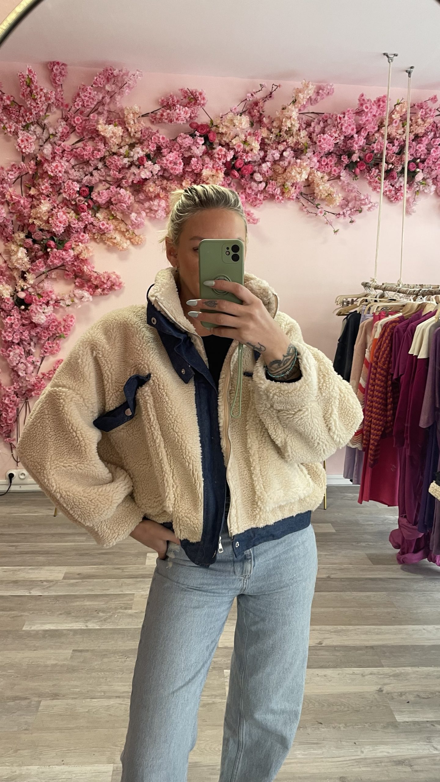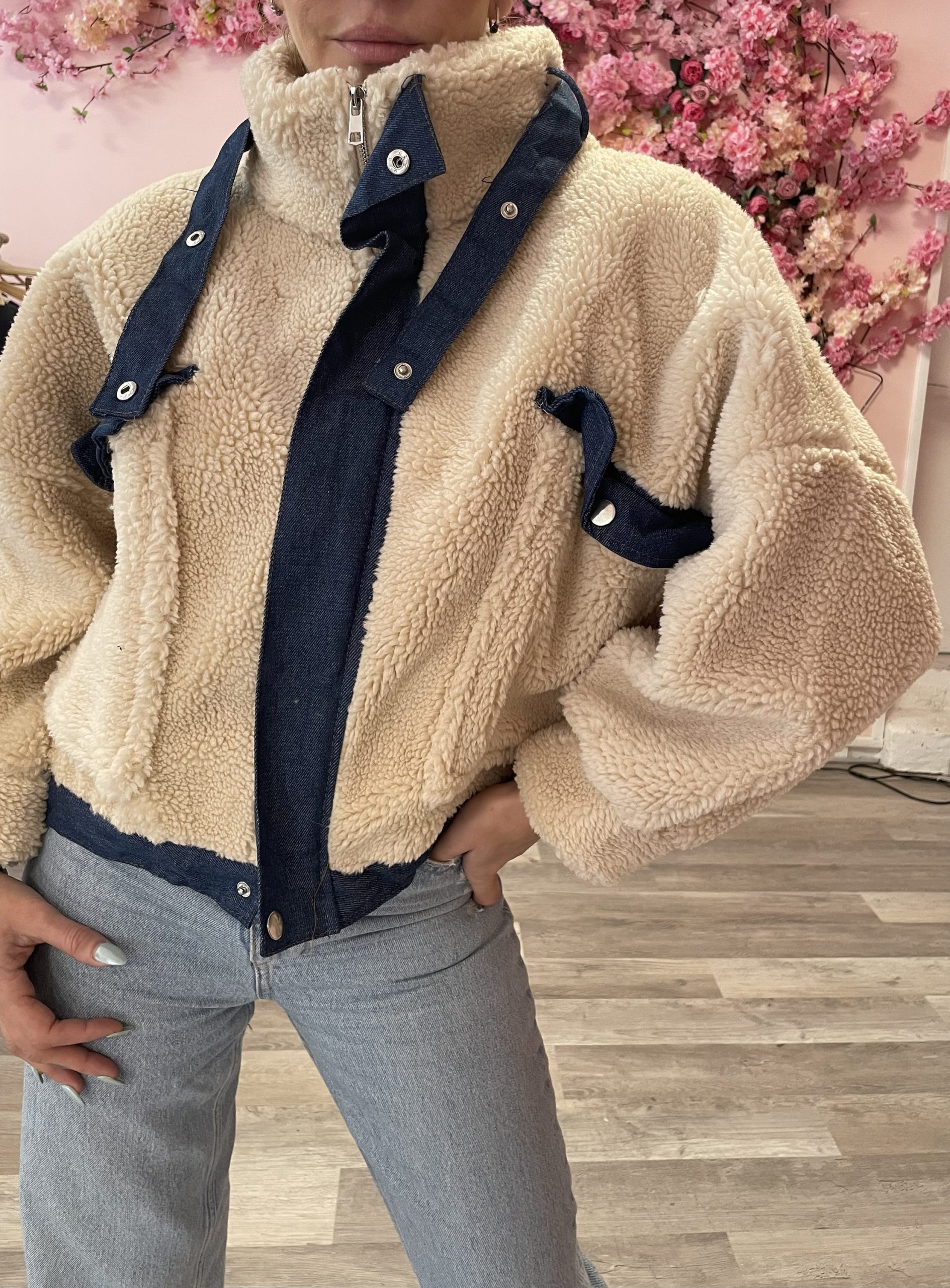 Le blouson à capuche bi-matière est conçu avec un effet peau de mouton. Il est doté d’une fermeture à glissière et de poches latérales pour un look et un confort optimaux. Ce blouson est parfait pour les journées froides et venteuses.