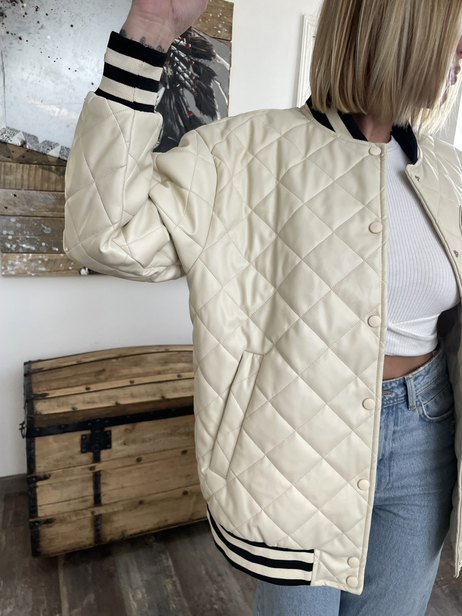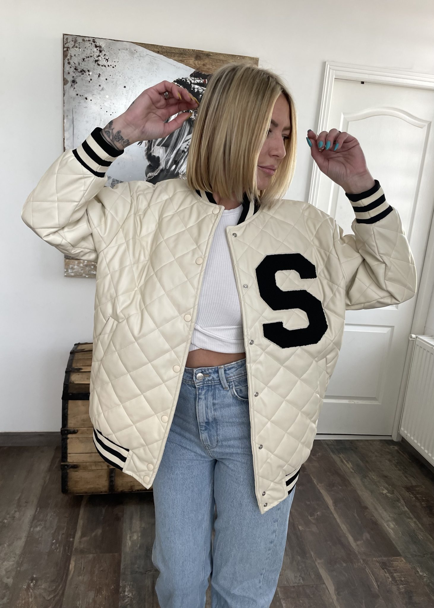 Ce bomber écru oversize est le choix parfait pour un look décontracté et tendance. Il est conçu avec un tissu doux et léger pour une sensation de confort et de bien-être. La coupe ample et les détails tels que la broderie et les poignets en ourlets côtelés, ajoutent une touche de style à votre look. Ce bomber est un must-have pour tous les amateurs de mode.