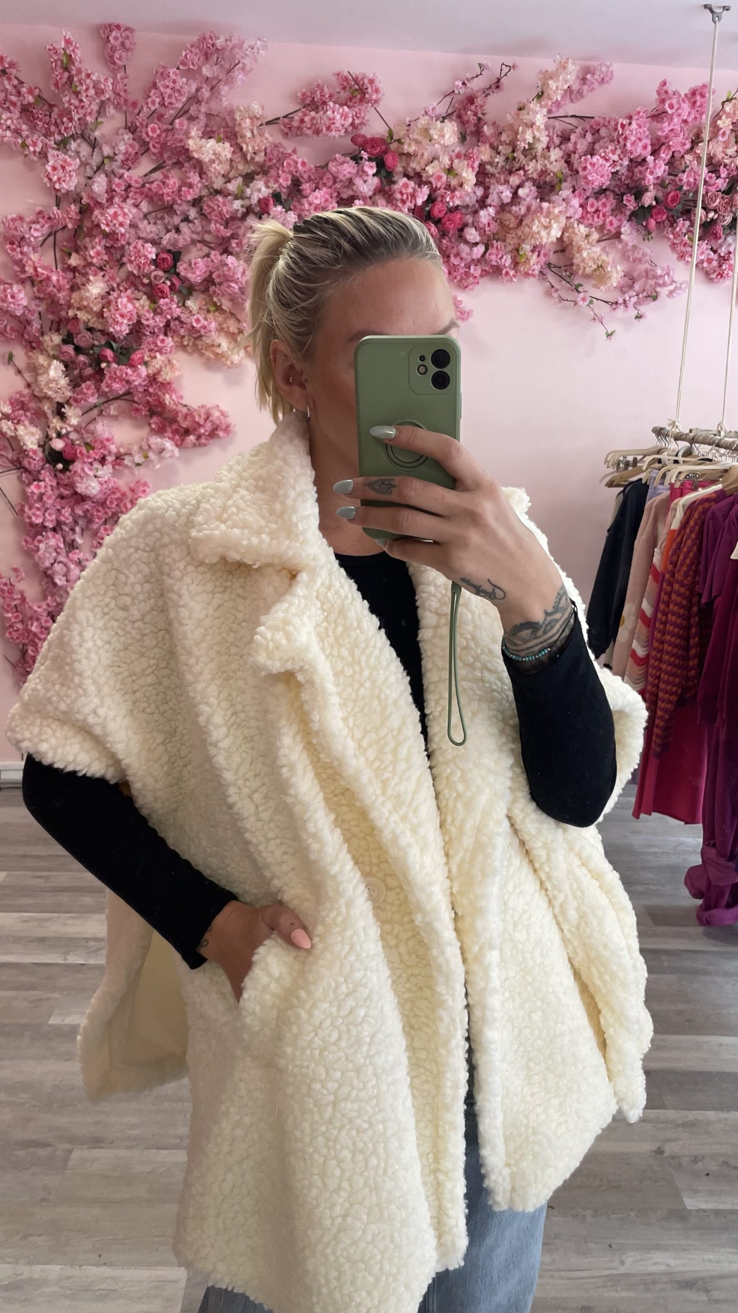 Ce poncho sans manche effet peau de mouton beige est le complément parfait à votre garde-robe. Sa coupe ajustée et sa douceur en font un vêtement idéal pour les journées froides. Elle s’accordera à merveille avec toutes sortes de tenues, du décontracté au plus élégant. Sa texture douce et moelleuse vous offrira une sensation de confort et de chaleur tout au long de la journée.