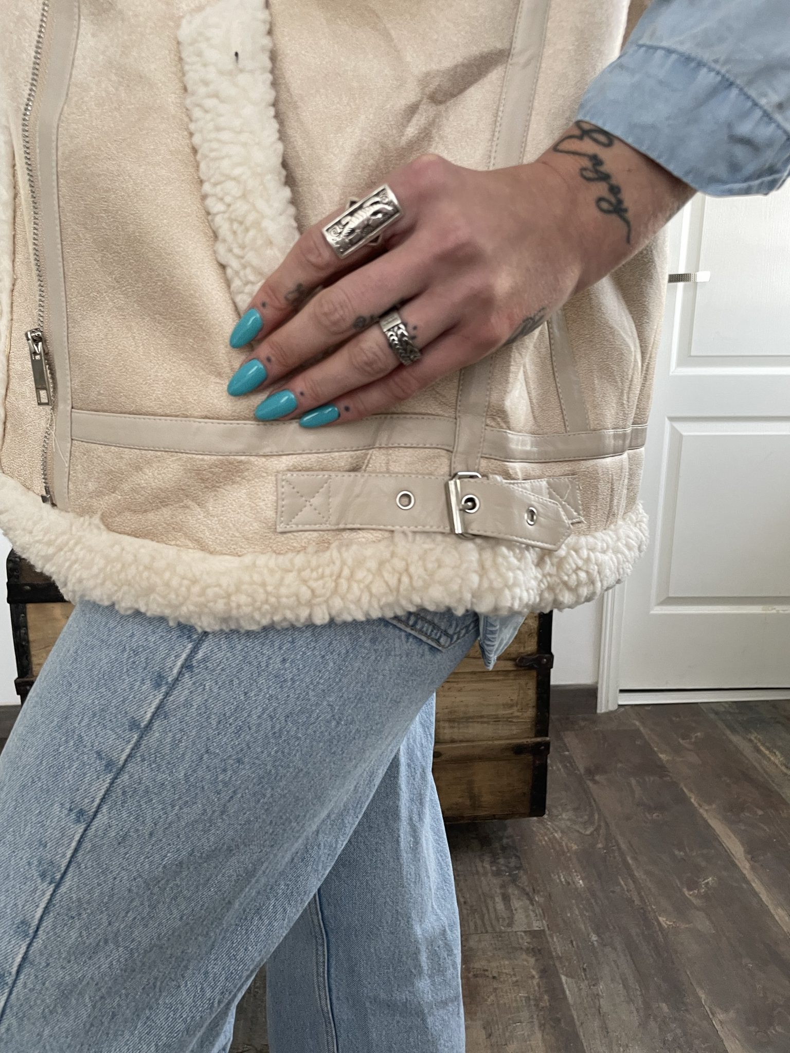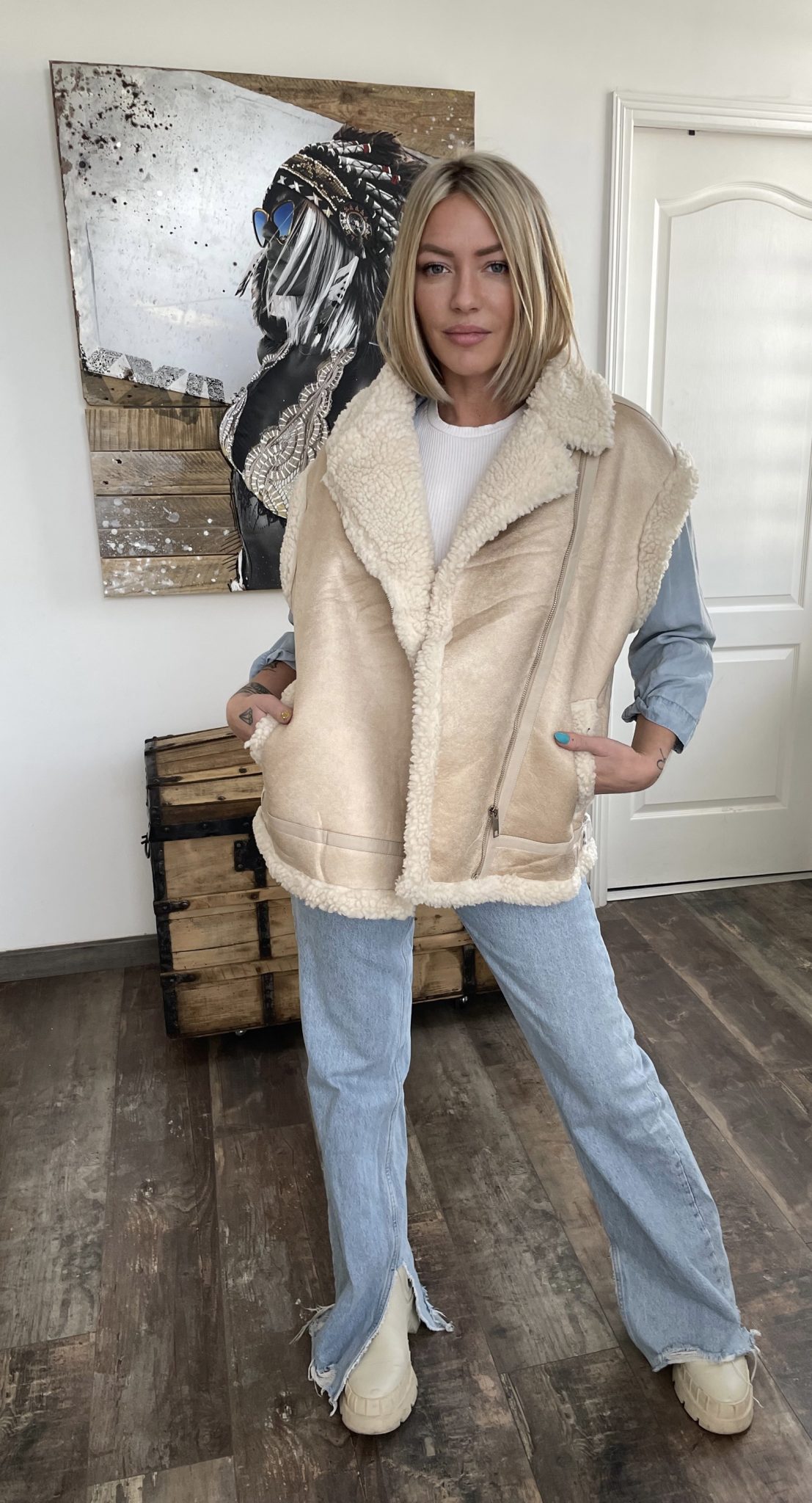 Ce gilet sans manche en suédine et tissus bouclette est le complément parfait à votre garde-robe. Fabriqué à partir de matériaux de qualité supérieure, il est doux et confortable à porter. Sa coupe ajustée et sa couleur neutre s’accordent à tous les styles et à toutes les occasions. Il est parfait pour les journées fraîches et les soirées chics. Vous serez à la mode et à l’aise à chaque fois que vous le porterez. Commandez le vôtre aujourd’hui et complétez votre look avec ce gilet sans manche en suédine.
