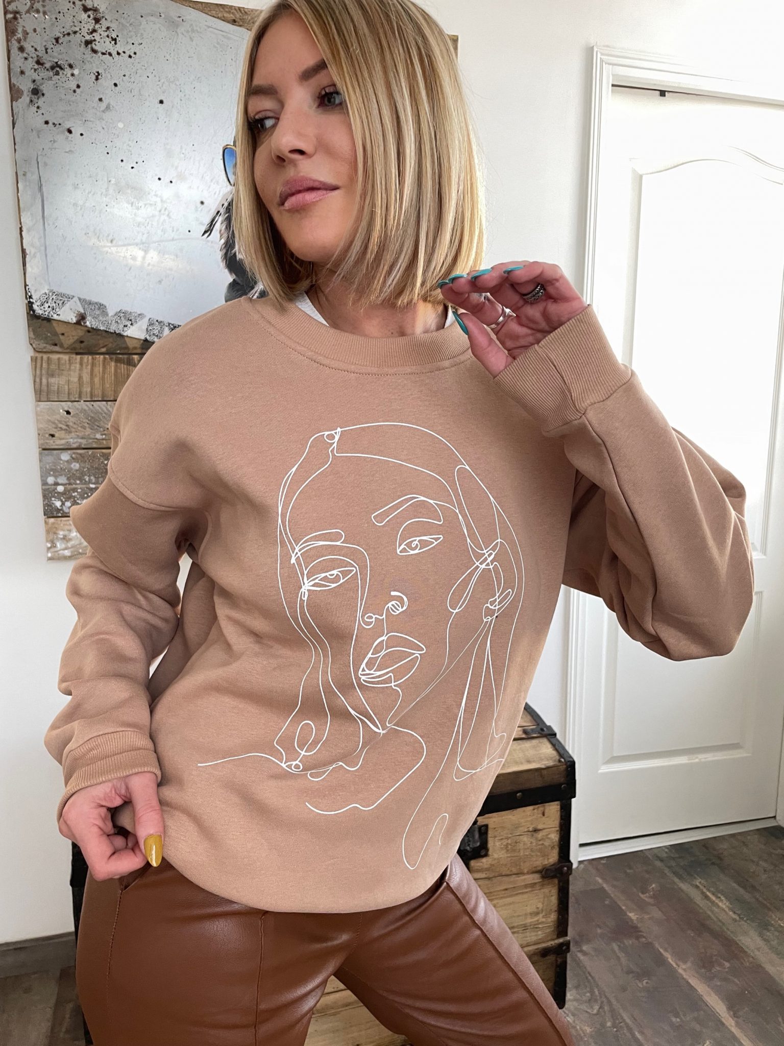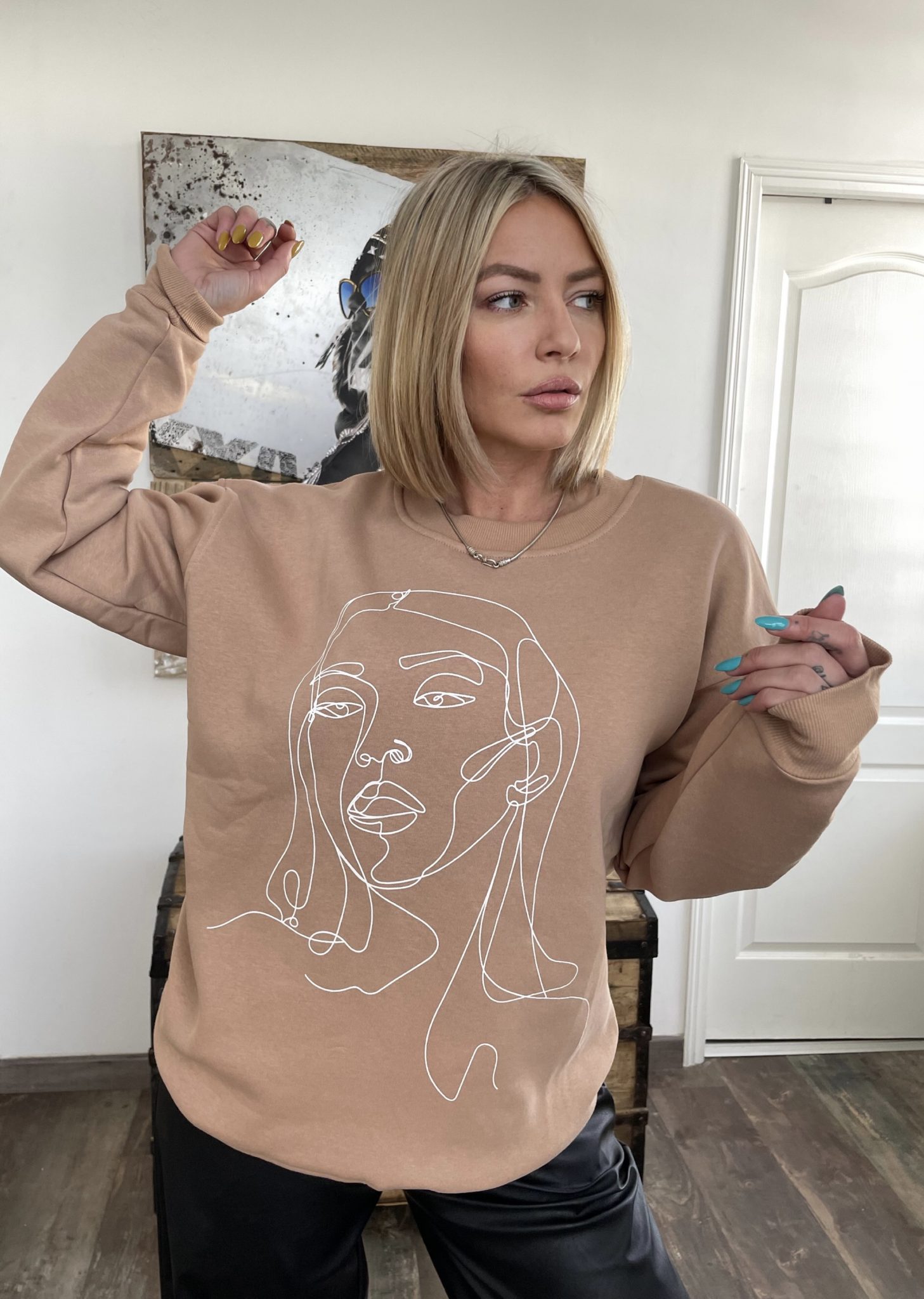 Le sweat oversize marron à motif abstrait visage est un sweat à manches longues conçu en coton, il est doux et confortable. Il est orné d’un motif abstrait représentant un visage et est doté d’un col rond.Il est parfait pour un look décontracté et tendance.
